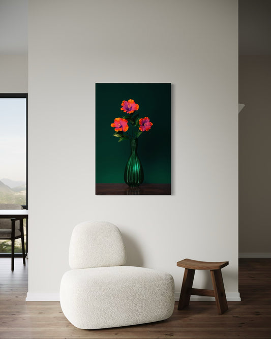 Neem een maandabonnement op wisselende 'groene' kunstwerken voor aan de muur op kantoor, thuis, in de horeca, winkel of wachtkamer. Prachtige gestileerde Stillevens van bloemen en planten - gemaakt door digitaal kunstenaar EYEREEN.